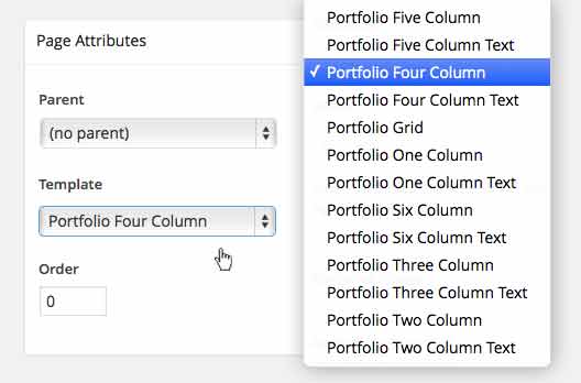 How To Change The Portfolio Page Template or Add A Sidebar?You can change the portfolio template very easily! Any of our portfolio layouts can utilize any of the 1-6 column layouts. Follow the steps below to change out the template.Navigate to a portfolio pages then click Edit Page in the top WordPress admin bar.On the right hand side is a Page Attributes box that has a Page Template dropdown field.Click the dropdown and select a portfolio page template.To add a sidebar, click on the Sidebar tab in the Fusion Options box and select a Sidebar 1 and/or Sidebar 2. Click Update button to save.View More Information In Our Documentation